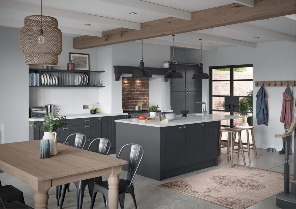 Show your country fun side with a Kensington shaker style kitchen incorporating door and accessory combinations suitable for any size of space. The door’s sloped inner profile, v-groove and grain finish means it is perfect for a busy family lifestyle.
