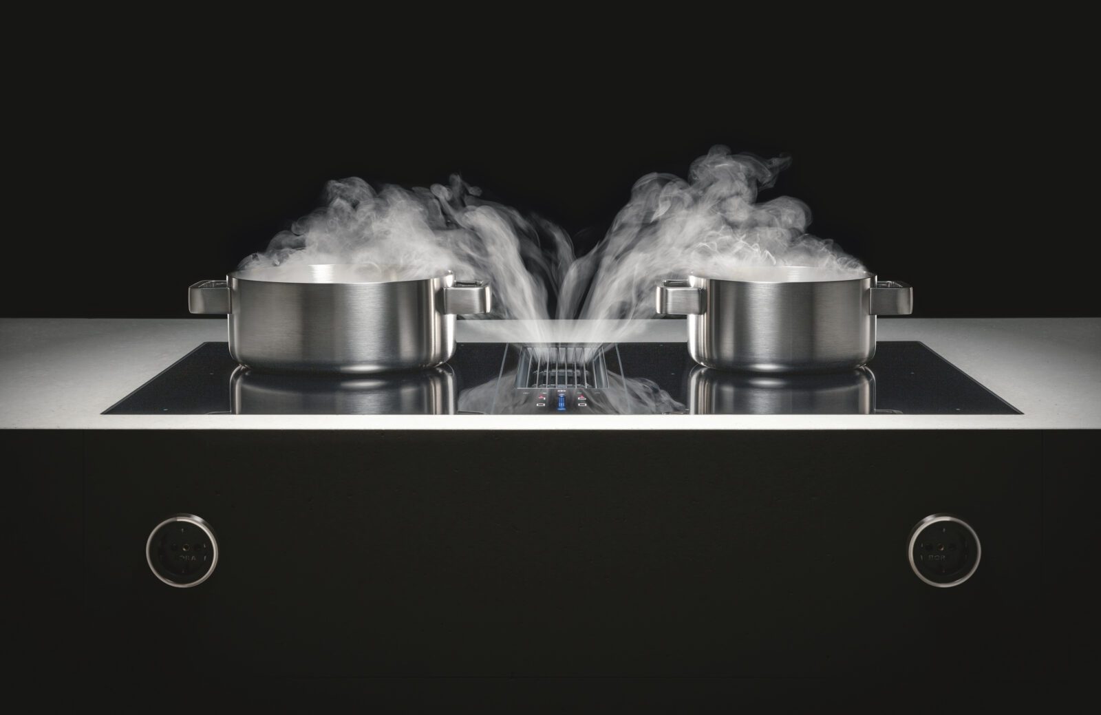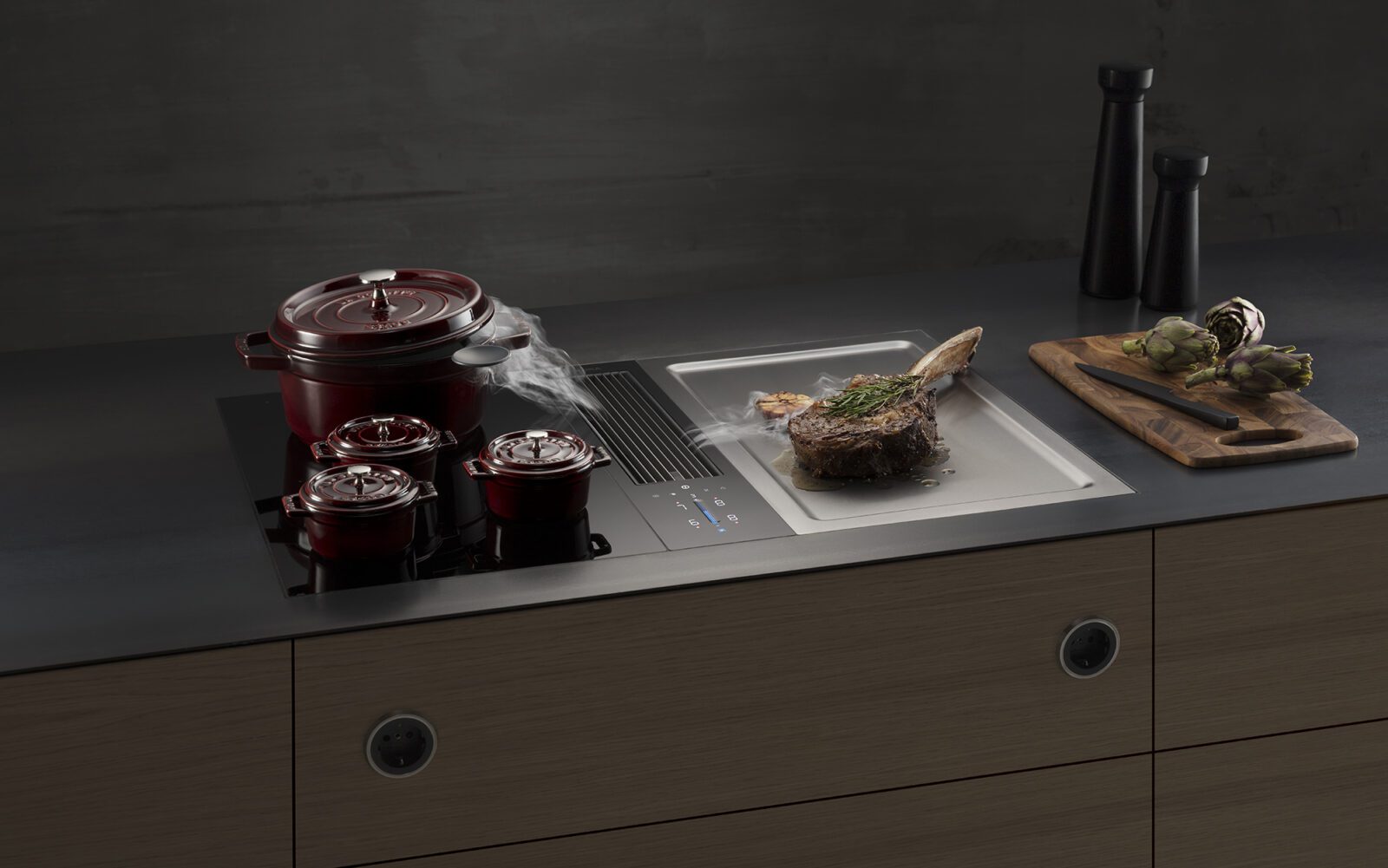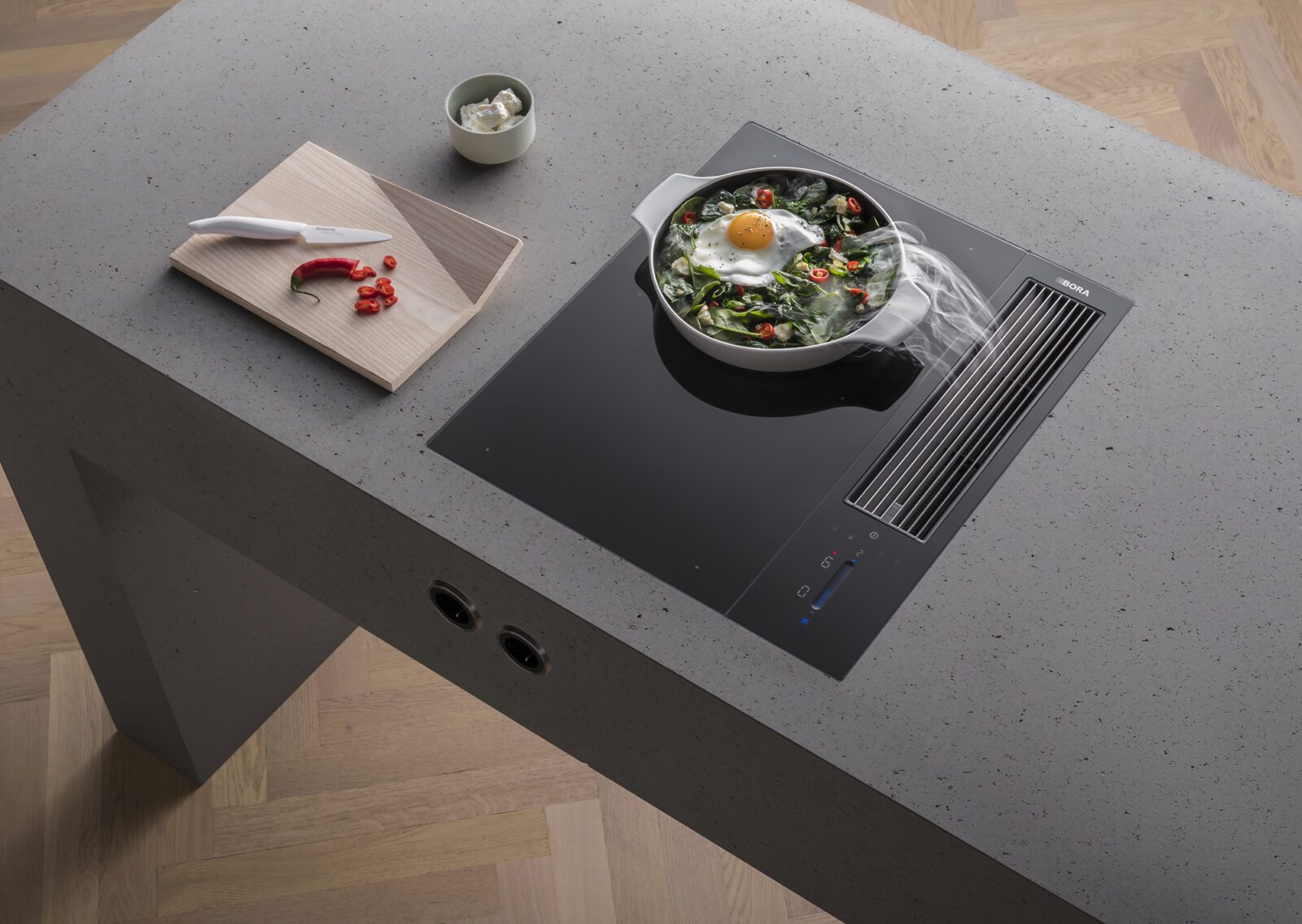 BORA Classic 2.0 offers a wide range of cooktops from surface induction to gas or Tepan stainless steel grill, which can be freely combined with the extractor system. Combinations with one, three or more cooktops are also possible.