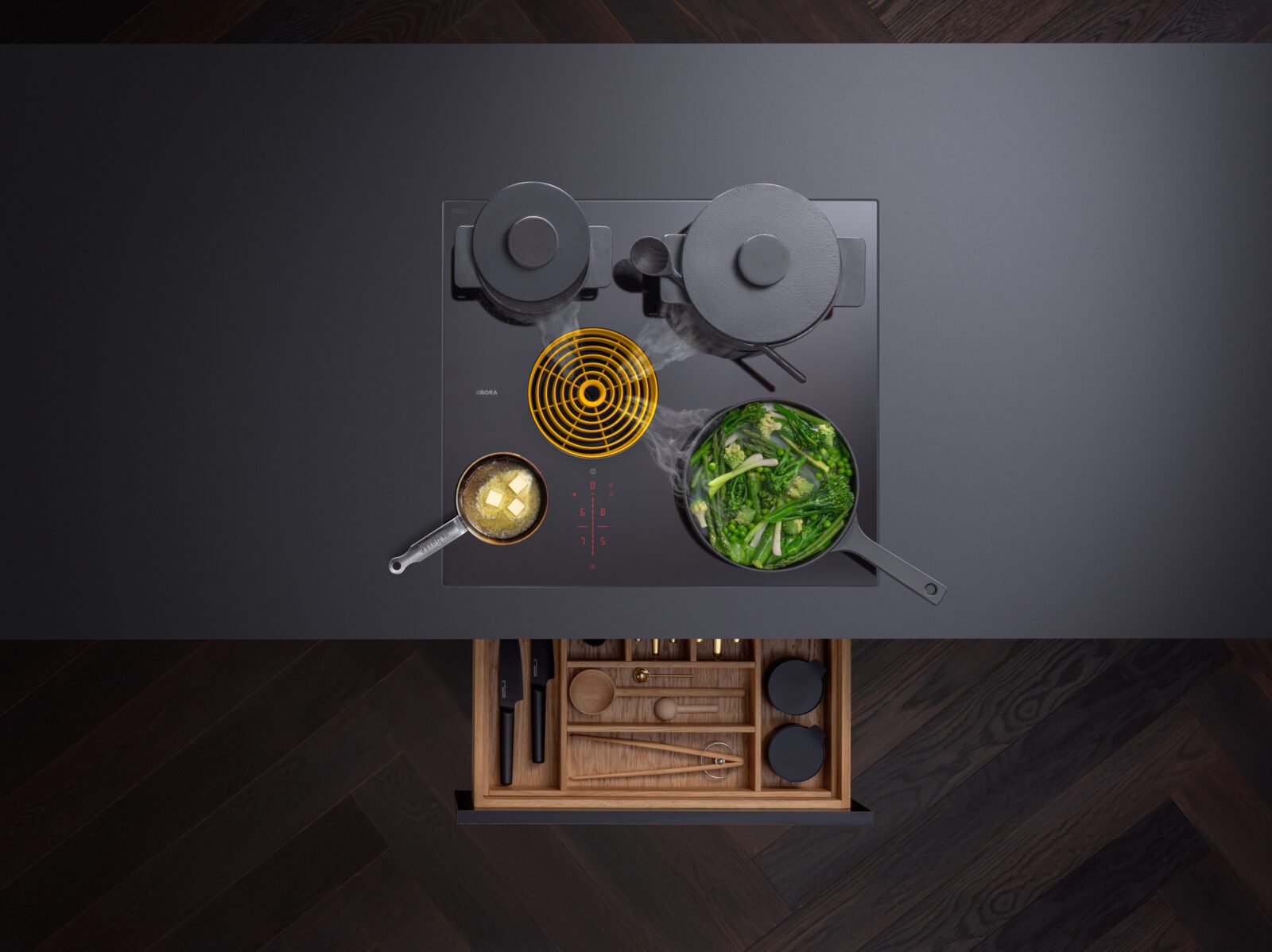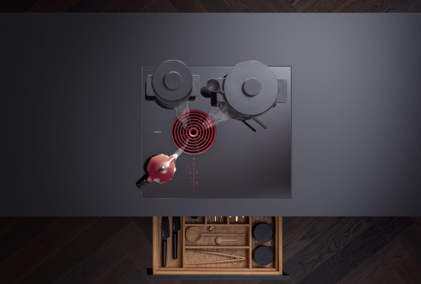 Discover the BORA S Pure – the ingenious space-saving solution for your kitchen. With its compact dimensions, this cooktop extractor fits seamlessly into even the smallest of kitchens, solving all your space dilemmas. Its integrated and automatically controlled extractor swiftly eliminates vapours and odours while cooking. The unique asymmetric arrangement of the extractor opening allows you to cook on four different-sized cooking zones, further refining your kitchen design. With intuitive touch controls and a quiet fan, the BORA S Pure offers both functionality and style at your fingertips.