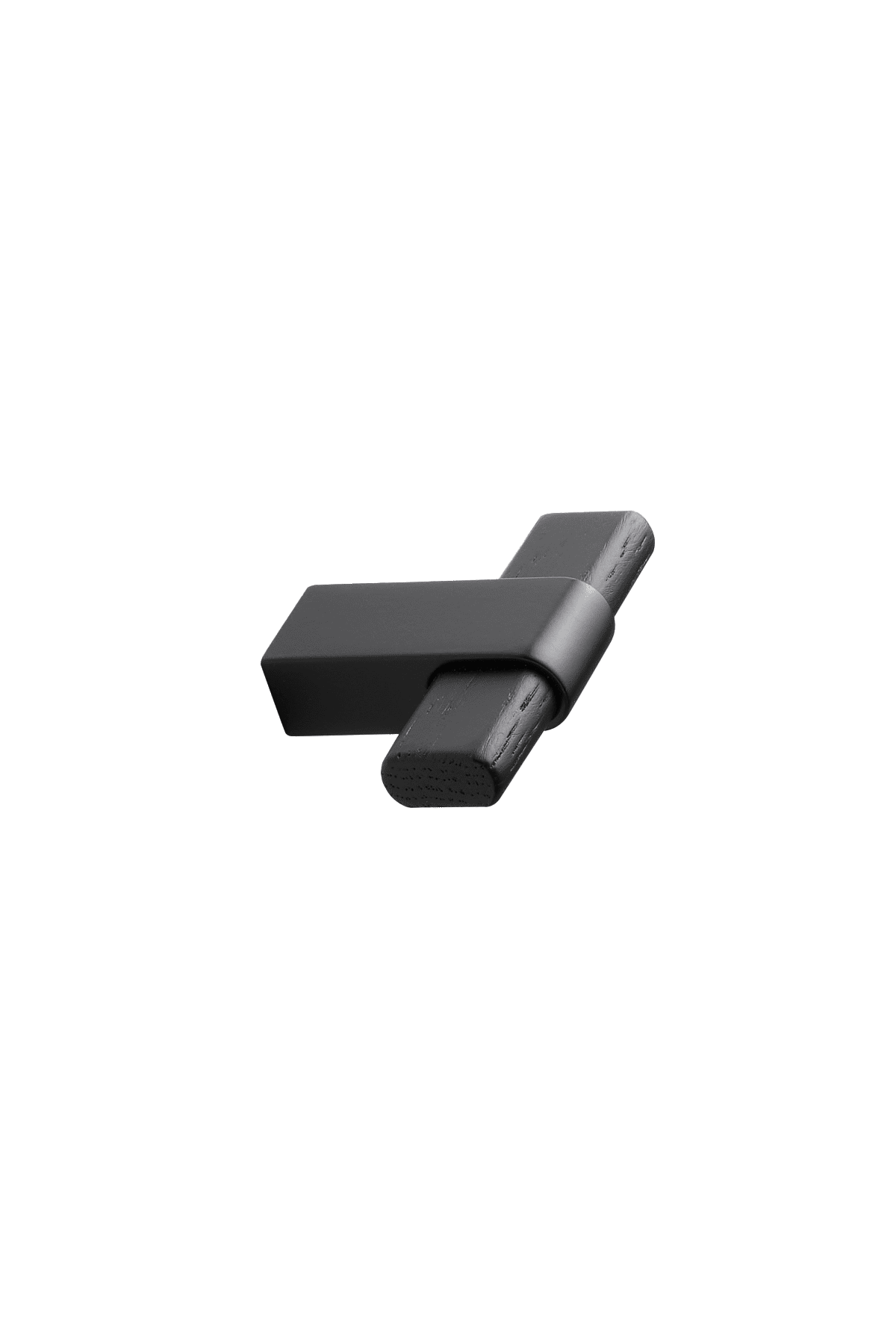The Crossing Black T Knob offers a bold combination of sleek black oak wood and matt black metal. This modern T-shaped knob, designed by kaschkasch, brings together two complementary materials in a design that feels both natural and contemporary. The stained black oak provides a smooth, comfortable feel, while the matt black metal base ensures strength and modern appeal.