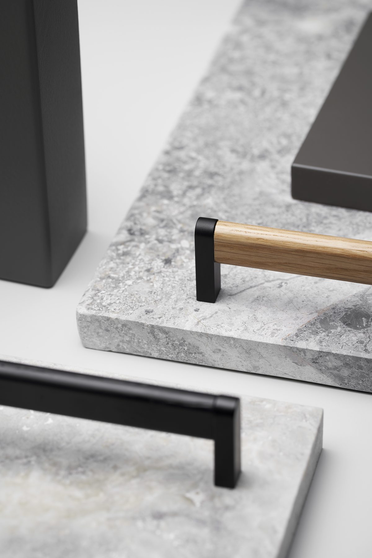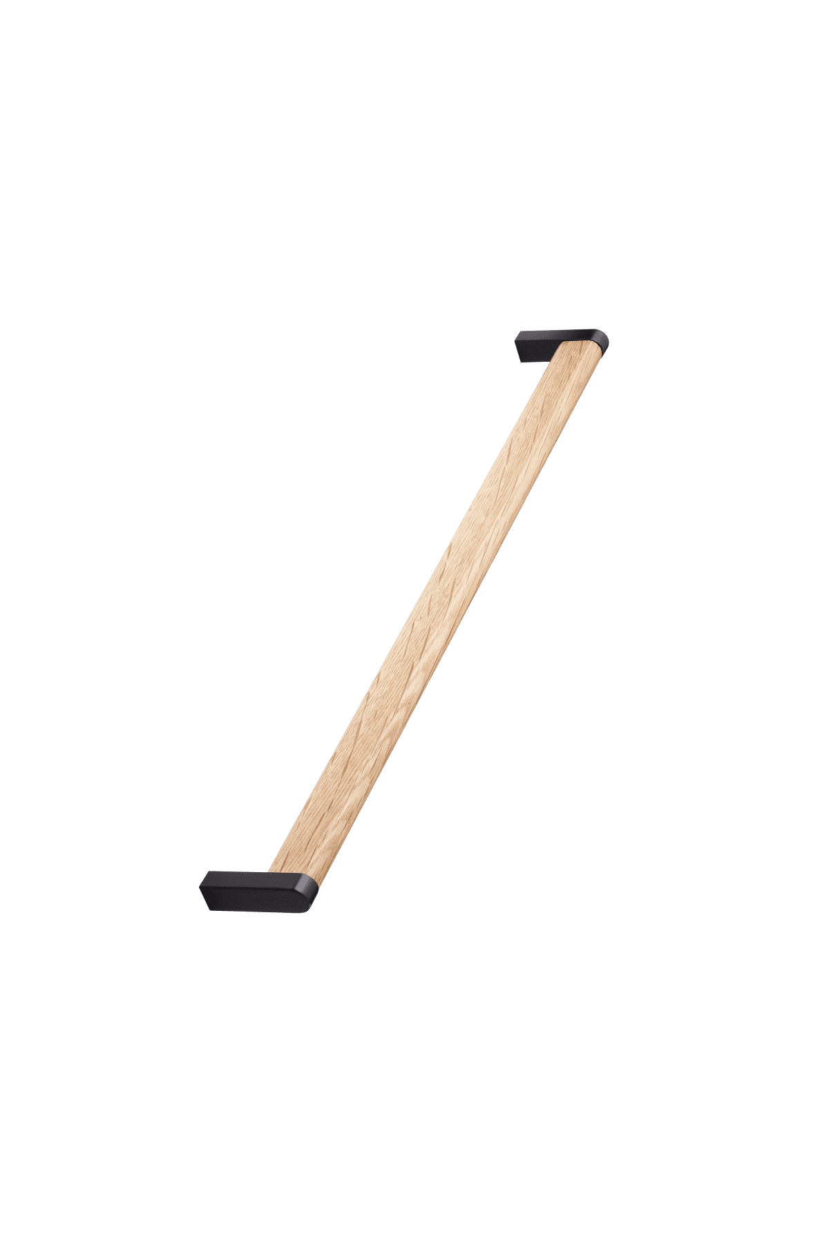 The Crossing Oak & Matt Black Handle combines the warmth of oak wood with the sleekness of matt black metal. Designed by the acclaimed German studio kaschkasch, this handle offers a perfect balance of natural and modern materials. The oak wood provides a smooth, pleasant feel. The matt black metal feet add precision and durability.