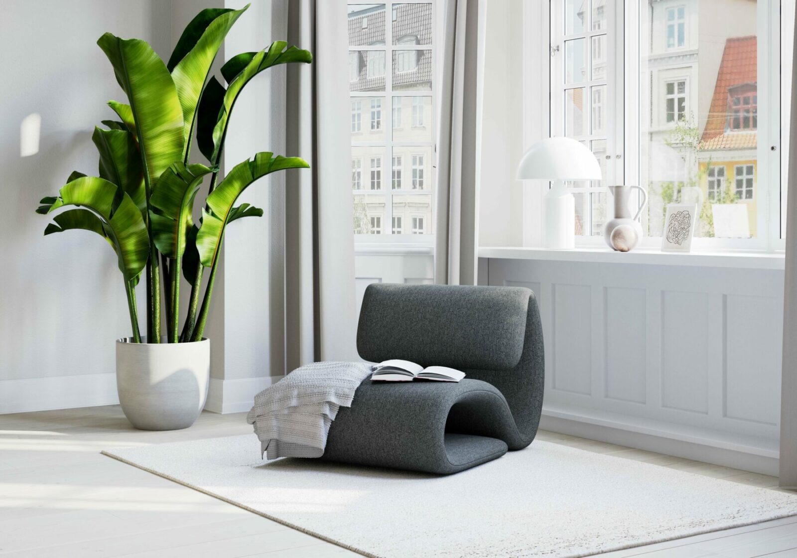 The Dubna Lounge Chair features a sleek and sophisticated design characterised by its clean lines and refined silhouette. The chair is upholstered in high-quality bouclé fabric available in pebble grey or pebble earth to suit your personal taste and interior decor. Its minimalist yet elegant design ensures it complements a wide range of decor styles, enhancing the overall ambiance of any space.