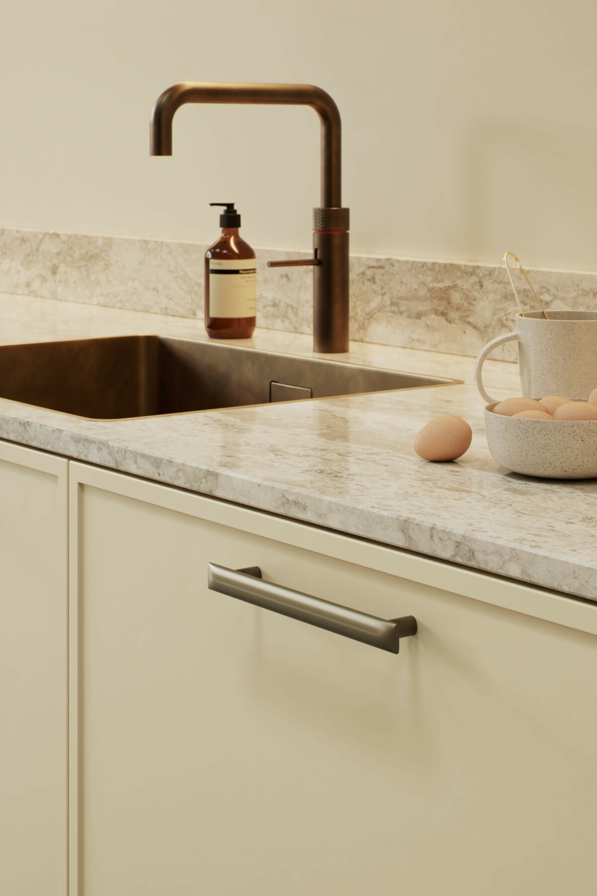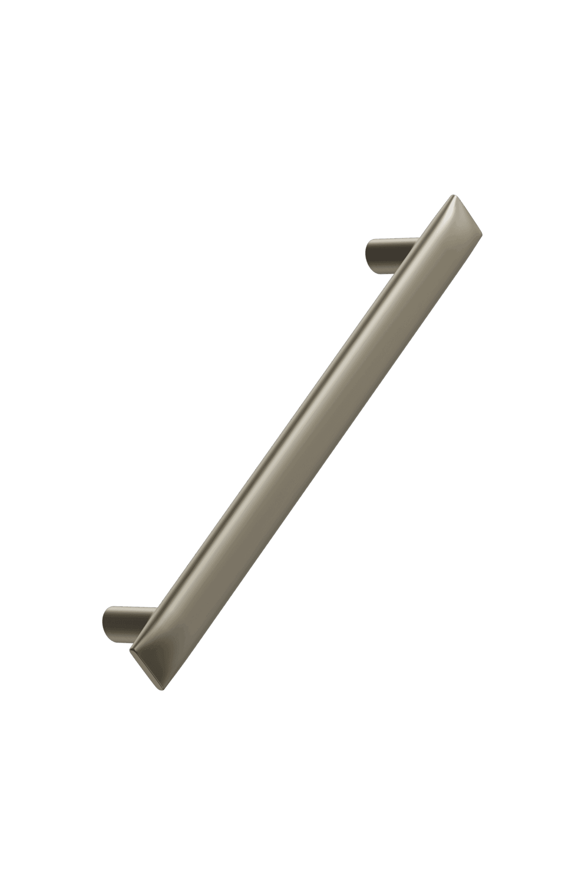 The Flow Handle features a distinctive oval body that is gently pressed and flattened at the ends, creating a sense of softness and refined elegance. Its surface subtly curves to evoke a feeling of lightness and fluid movement, adding a sophisticated touch to any furniture piece.