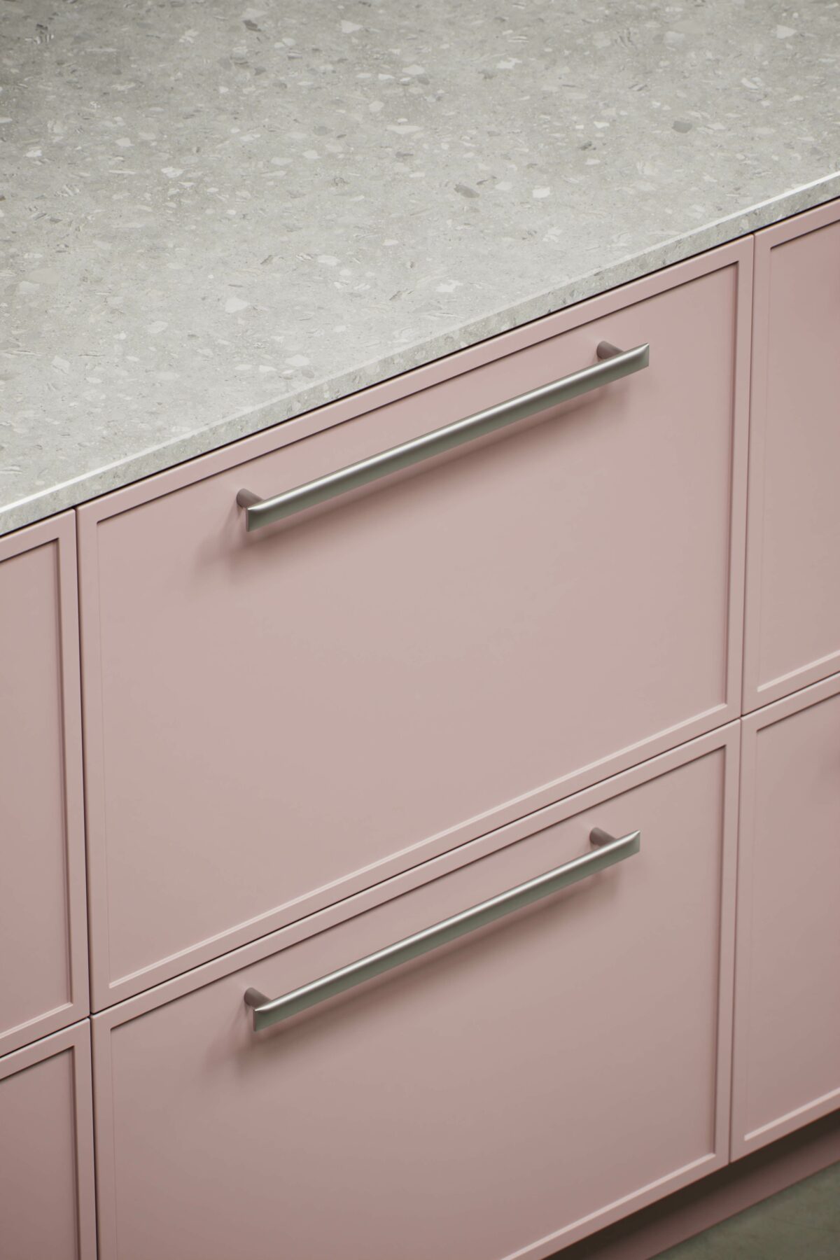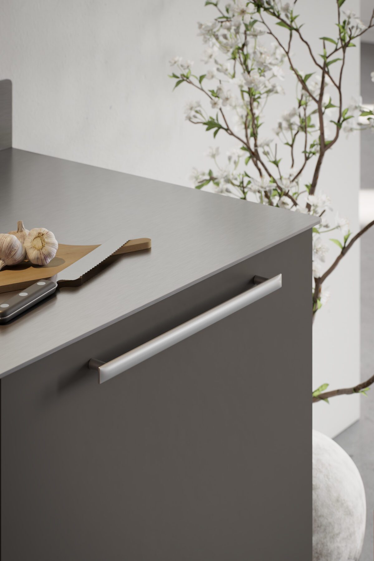 The Flow Handle showcases a beautifully refined design, with its unique oval body gently pressed and subtly flattened at the ends to create a soft, sophisticated look. Its smooth surface evokes a sense of movement and lightness, adding an understated elegance to any furniture piece. The same oval shape is mirrored on the two supports, ensuring a seamless and harmonious aesthetic. Crafted from durable Zamac with an Inox look finish, this handle is both stylish and functional.