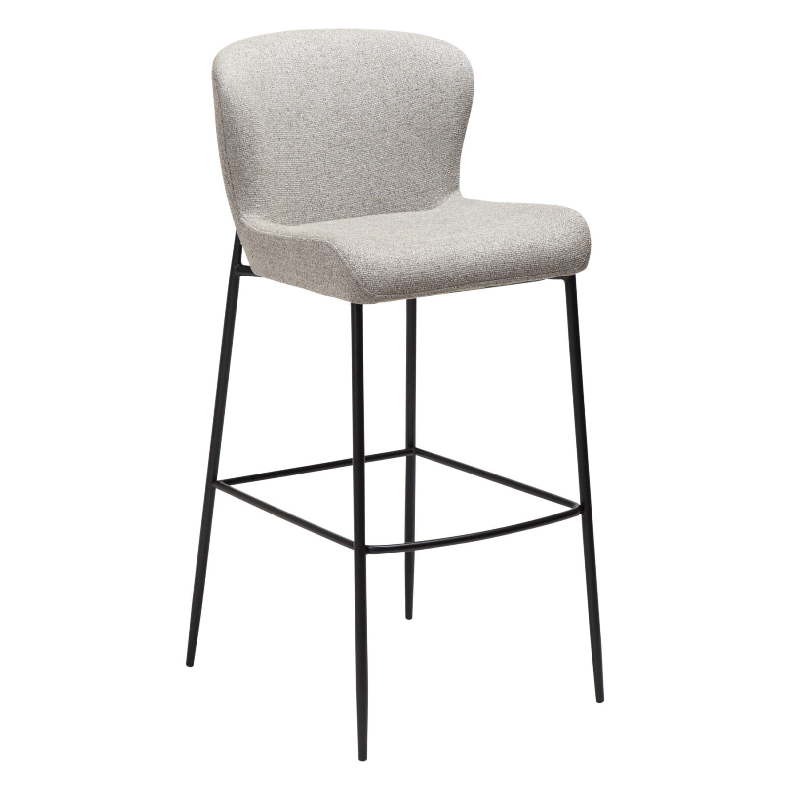 he GLAM Bar Stool – Black Legs is a stylish and refined seating option, perfect for home bars and kitchen counters. Designed by Sanne Protin, this stool features sleek black legs paired with plush bouclé fabric. It is available in three elegant colors: pebble earth, pebble grey, and simple beige. Moreover, its contoured seat provides exceptional support and comfort, making it ideal for both casual and formal settings.