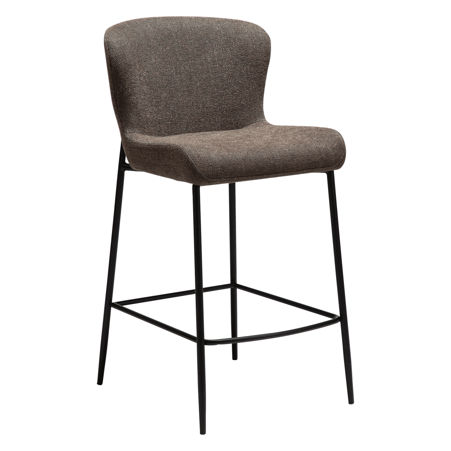 The GLAM Counter Stool – Black Metal Legs is a refined seating option designed for kitchen islands and counters. Created by Sanne Protin, this stool features sturdy black metal legs paired with a plush cushioned seat. It offers the perfect mix of elegance and comfort. Moreover, the stool is available in five luxurious fabric options: major brown, cashmere, pebble earth, pebble grey, and simple beige.