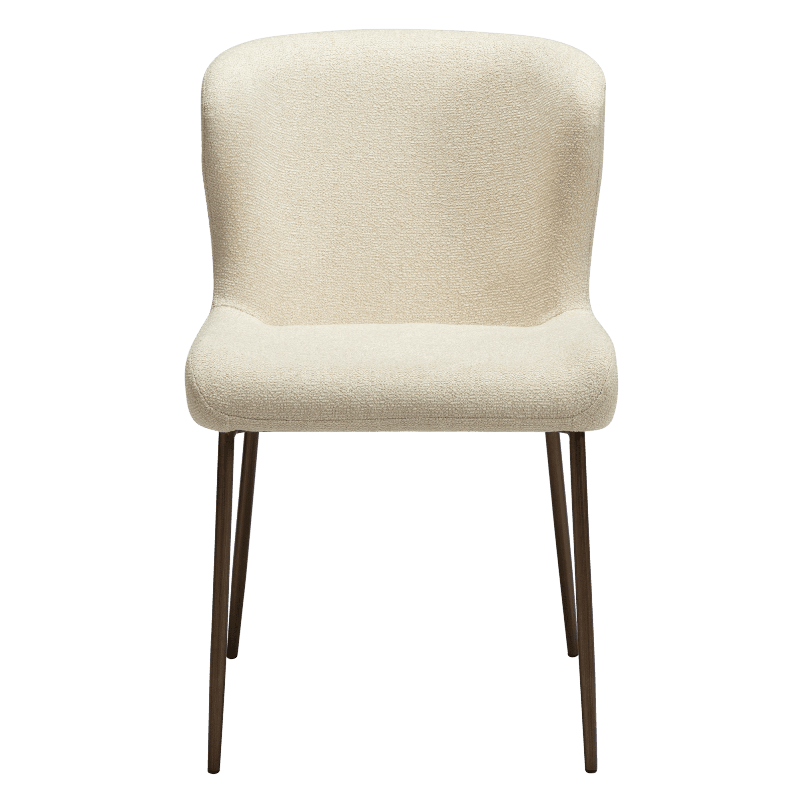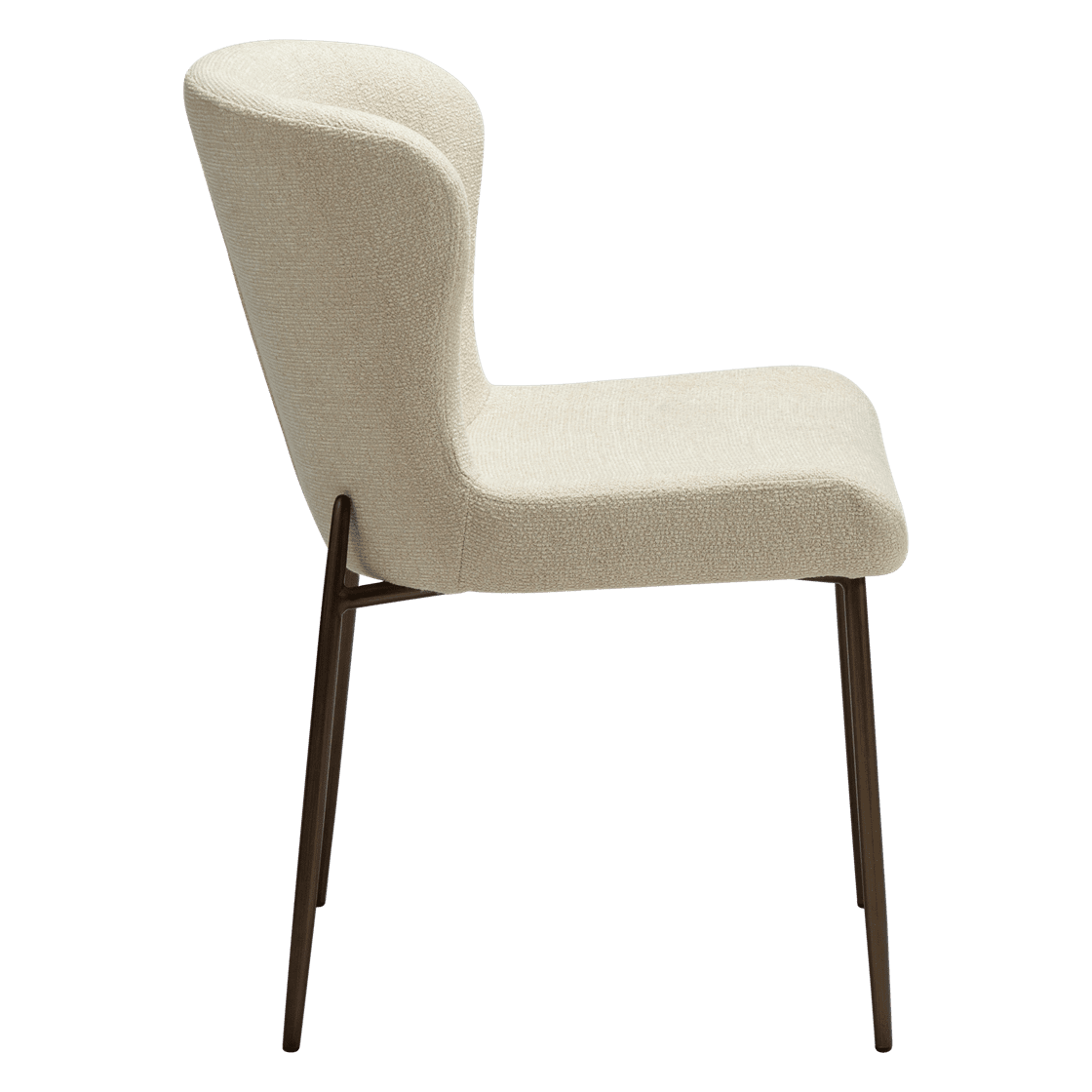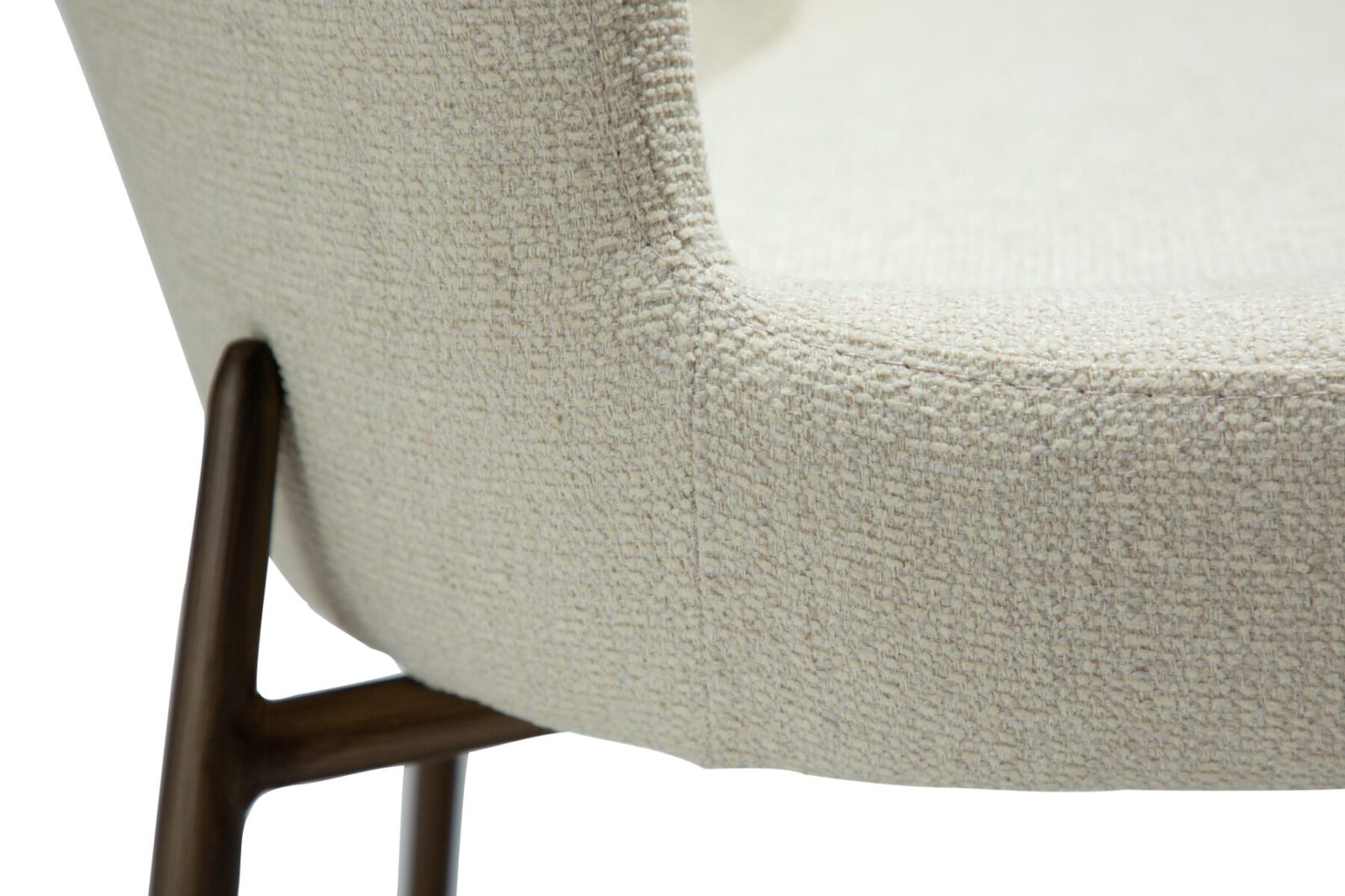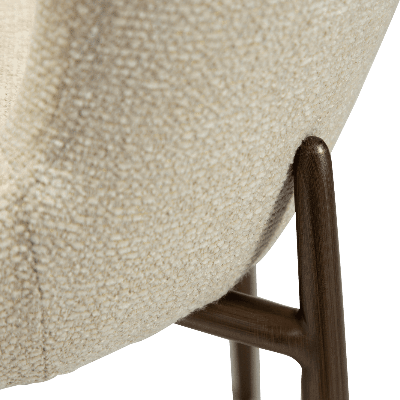 The GLAM Dining Chair – Antique Brass Legs adds timeless elegance and modern luxury to any setting. Designed by Sanne Protin, this chair features a contoured seat upholstered in soft bouclé fabric. Moreover, the plush upholstery enhances comfort while offering durability for everyday use. Its textured design adds a rich, stylish look to both homes and offices.