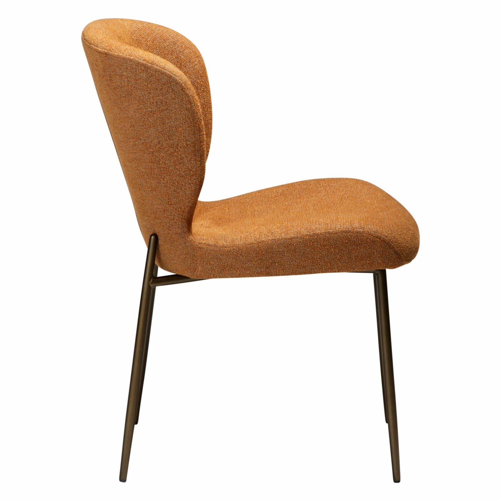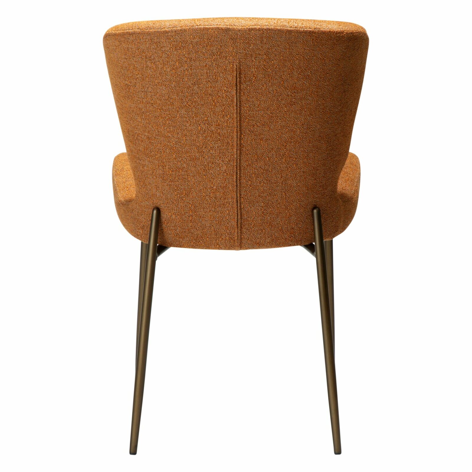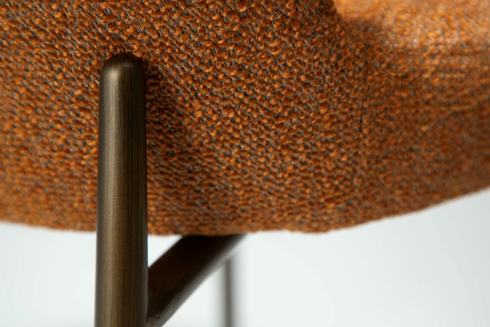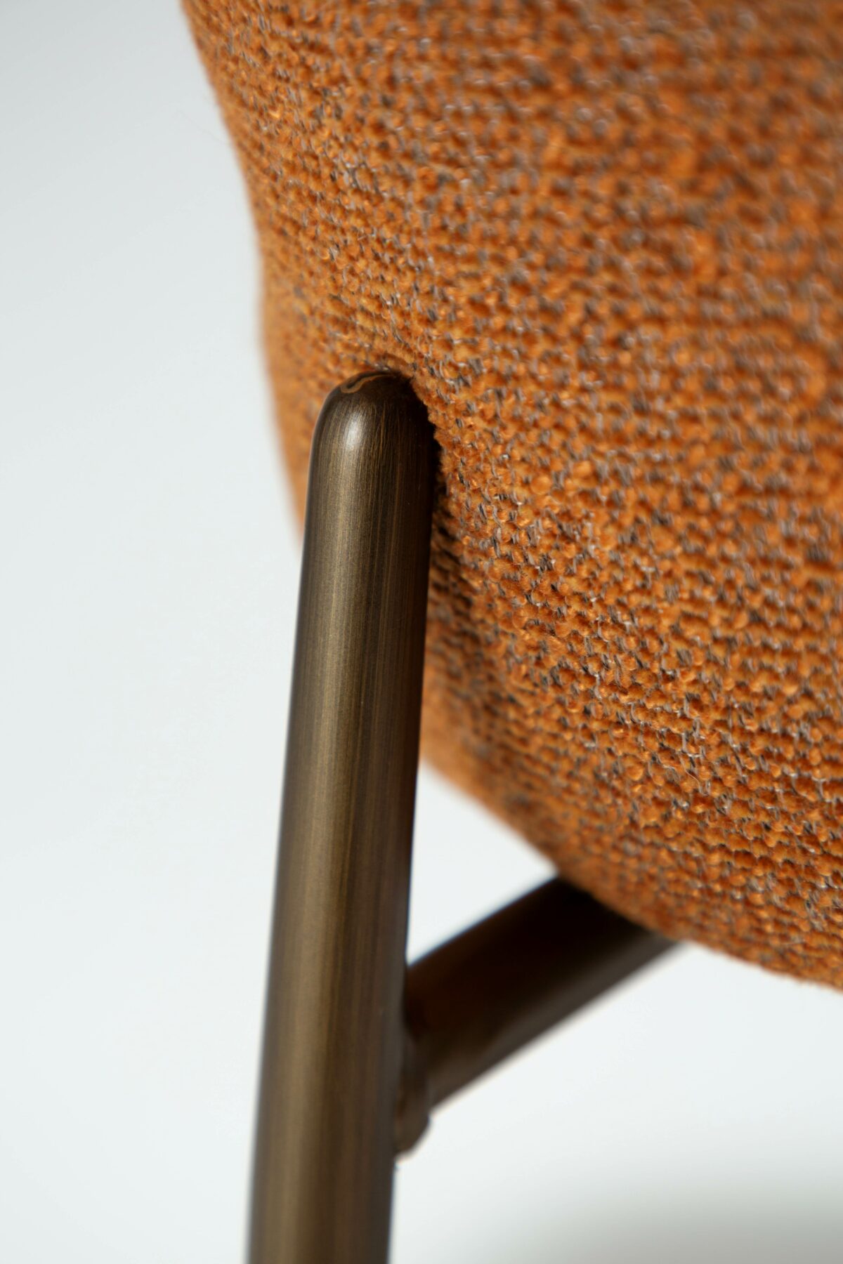 The GLORY chair is a striking blend of playful design and timeless elegance. Its softly curved backrest flows into wing-like contours, offering both visual interest and ergonomic comfort. Paired with slender, antique brass legs, this chair adds warmth and sophistication to any interior.