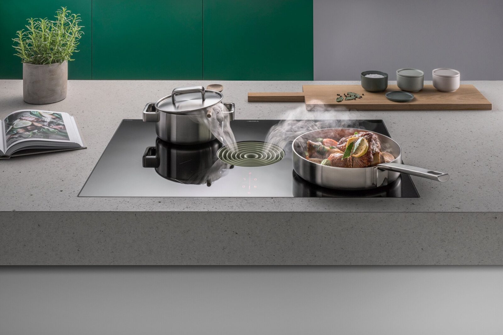 Maximum Storage Space: With its low installation height and integrated recirculation unit, the BORA Pure guarantees maximum storage space for pots and other kitchen utensils, even in 60-cm-deep kitchen units.
