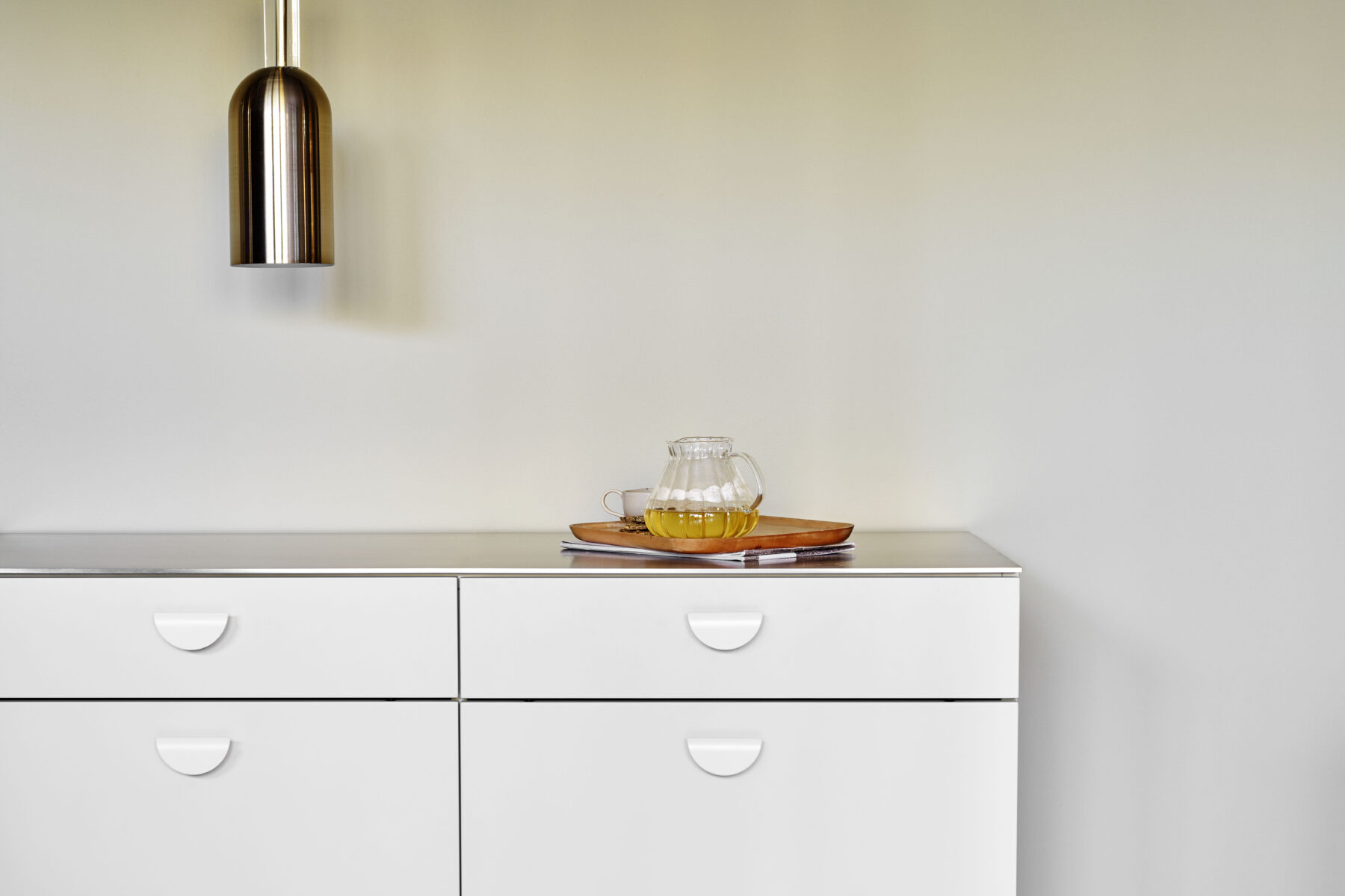 In addition, the handle can be installed in multiple orientations. When paired across adjacent panels, two handles form a complete circle. This creates a simple but striking design feature.