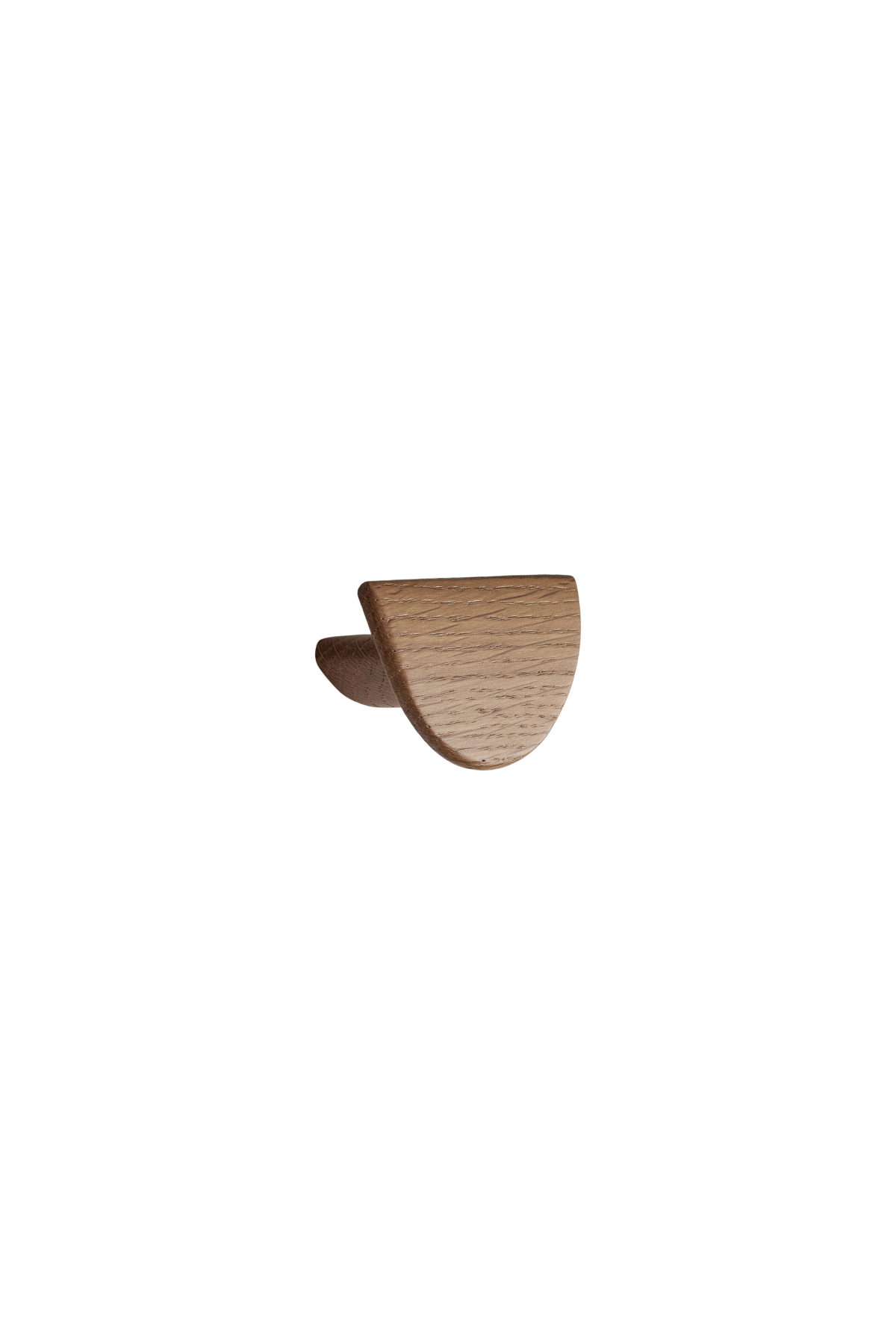 A small oak cabinet handle with a half-moon shape, designed to bring warmth and a natural, architectural finish to kitchen and furniture cabinetry.