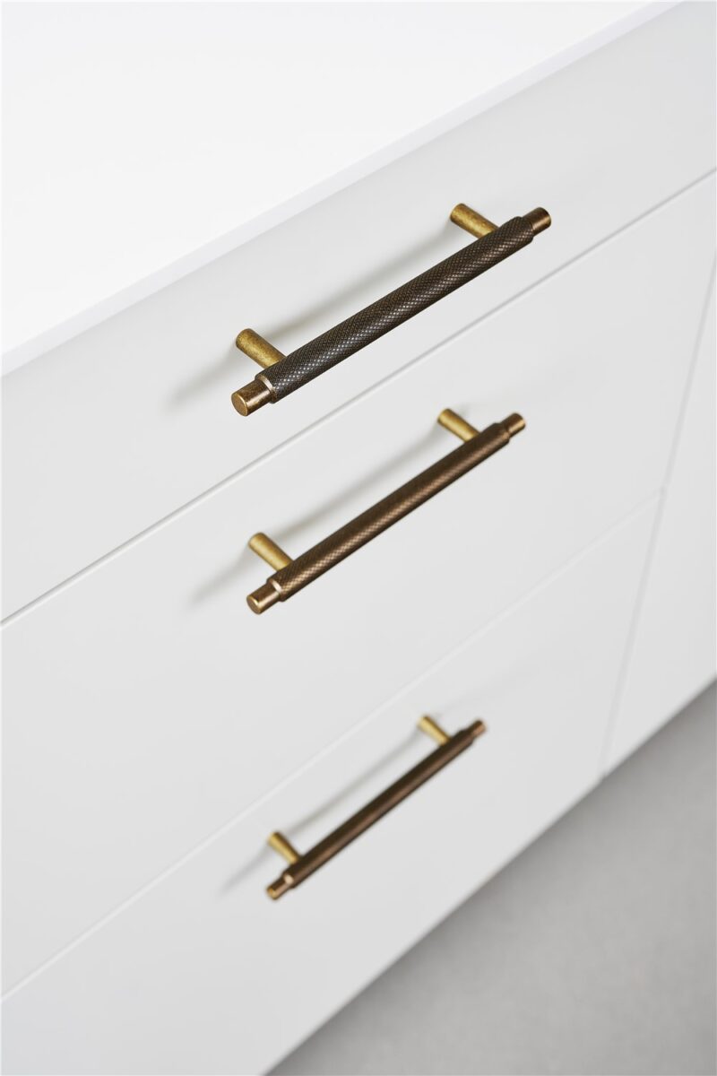 Furthermore, designed by Jakob Kamper from Kamper Form, this handle embodies timeless elegance while still remaining true to its industrial roots. In addition, thehandle is incredibly versatile, adapting effortlessly to both modern and traditional interiors. Its antique brass finish further enhances a sense of history and warmth, making it suitable for a variety of settings.