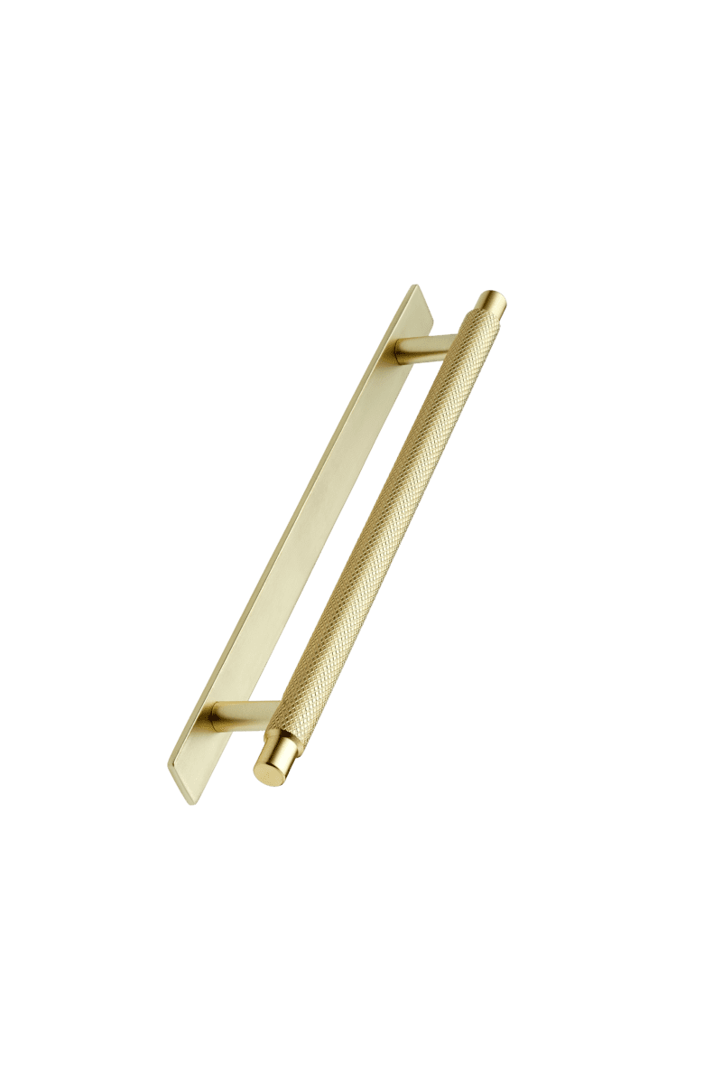 The Manor Gold Handle with Back Plate blends industrial-inspired design with a luxurious gold finish, creating a refined yet functional addition to any space. The diamond-cut texture enhances grip, while the brilliant gold finish adds a sophisticated touch, making this handle a versatile choice for modern and traditional interiors alike. Whether you’re updating kitchen cabinets, bathroom vanities, or wardrobe doors, this handle adds elegance and practicality.
