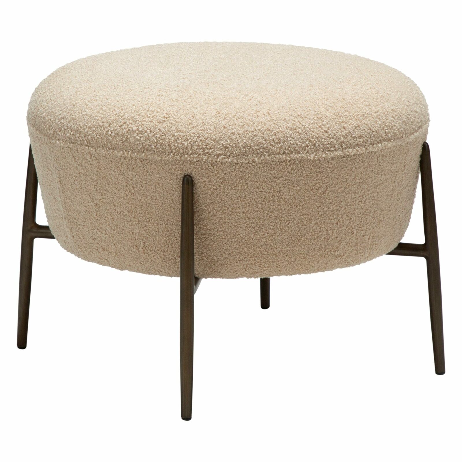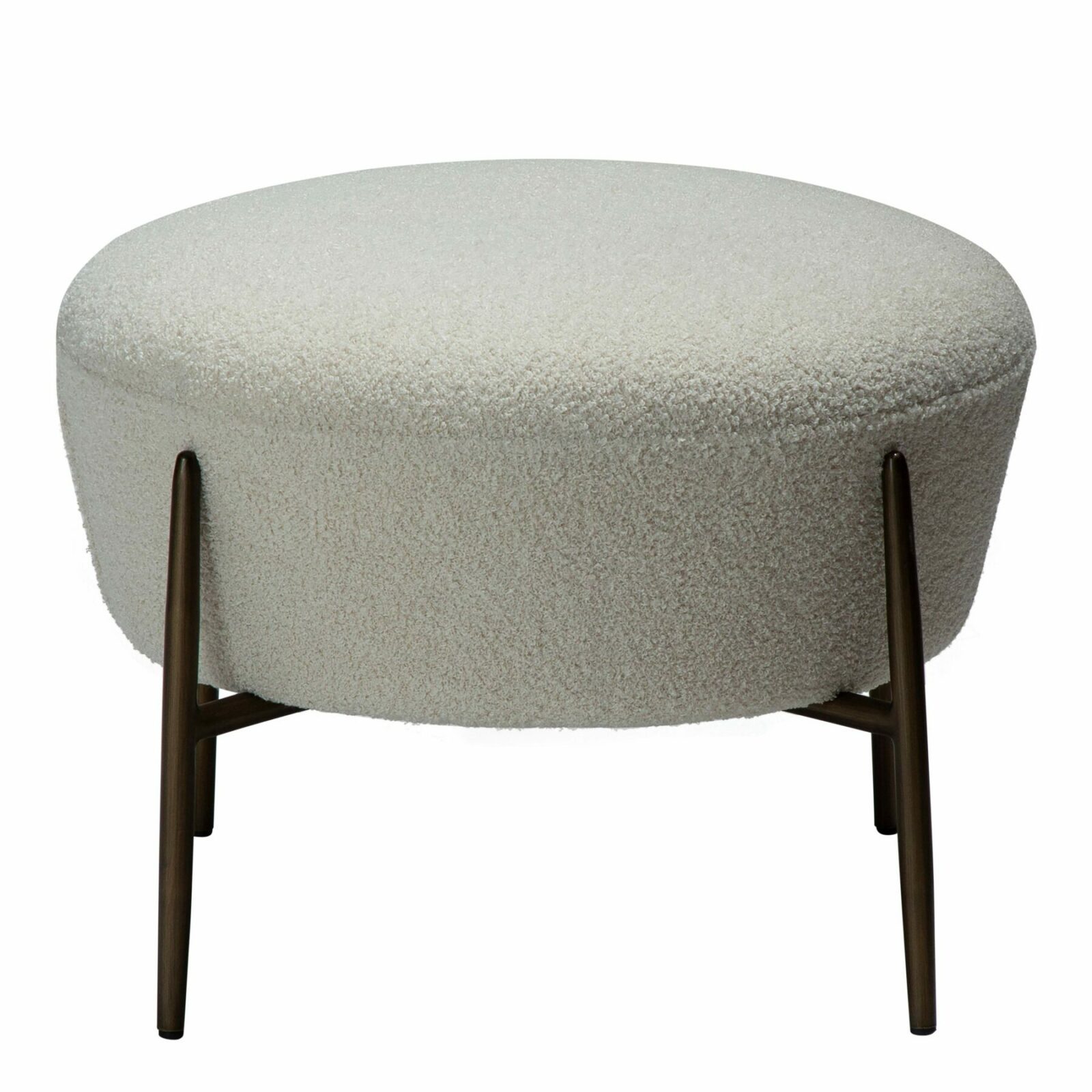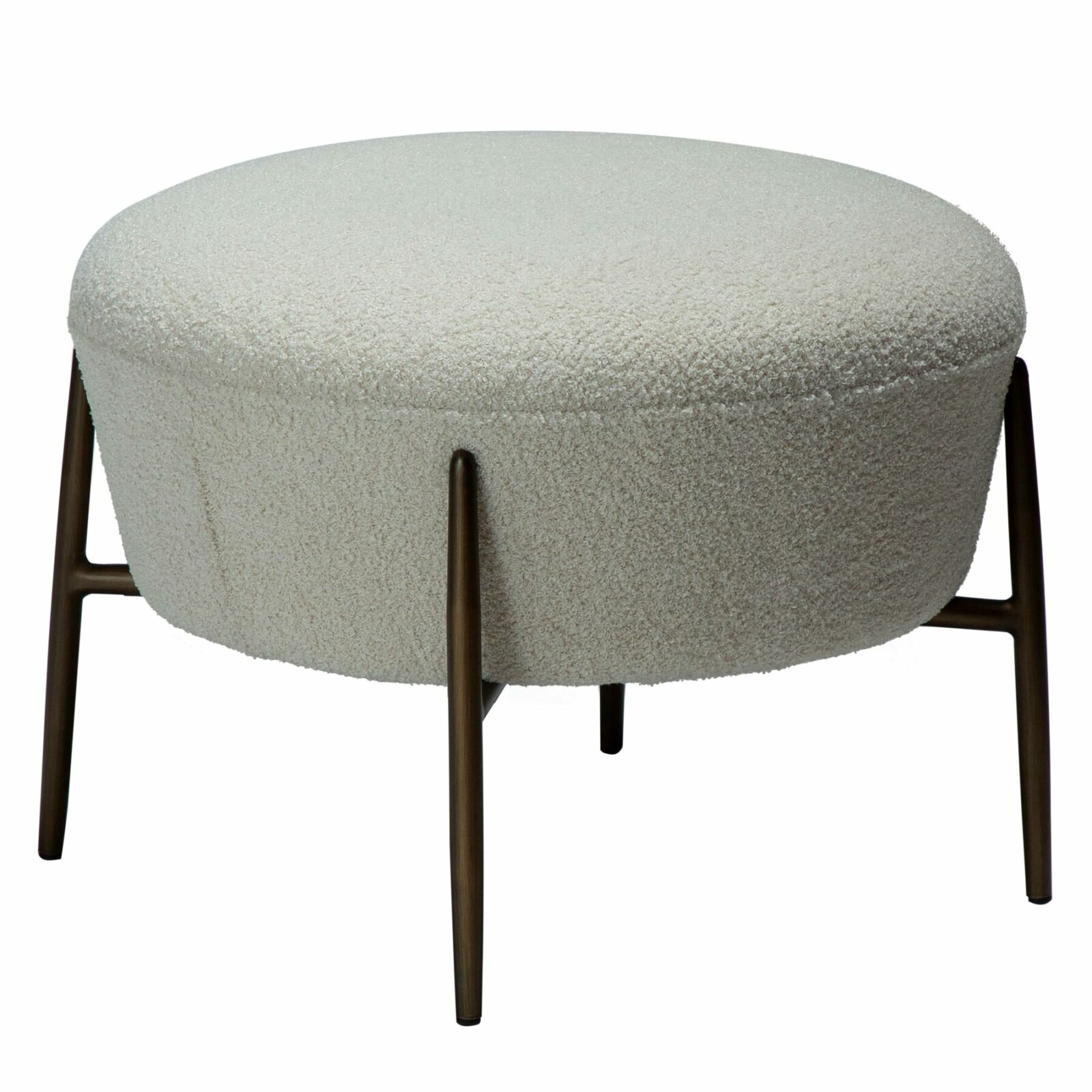 The ORBIT footstool is a stylish and functional addition to any living space. Designed to complement the ORBIT lounge chair, it features a generously cushioned seat with a soft bouclé texture, providing both comfort and contemporary appeal. The sleek, antique brass legs add a refined touch and ensure stability.