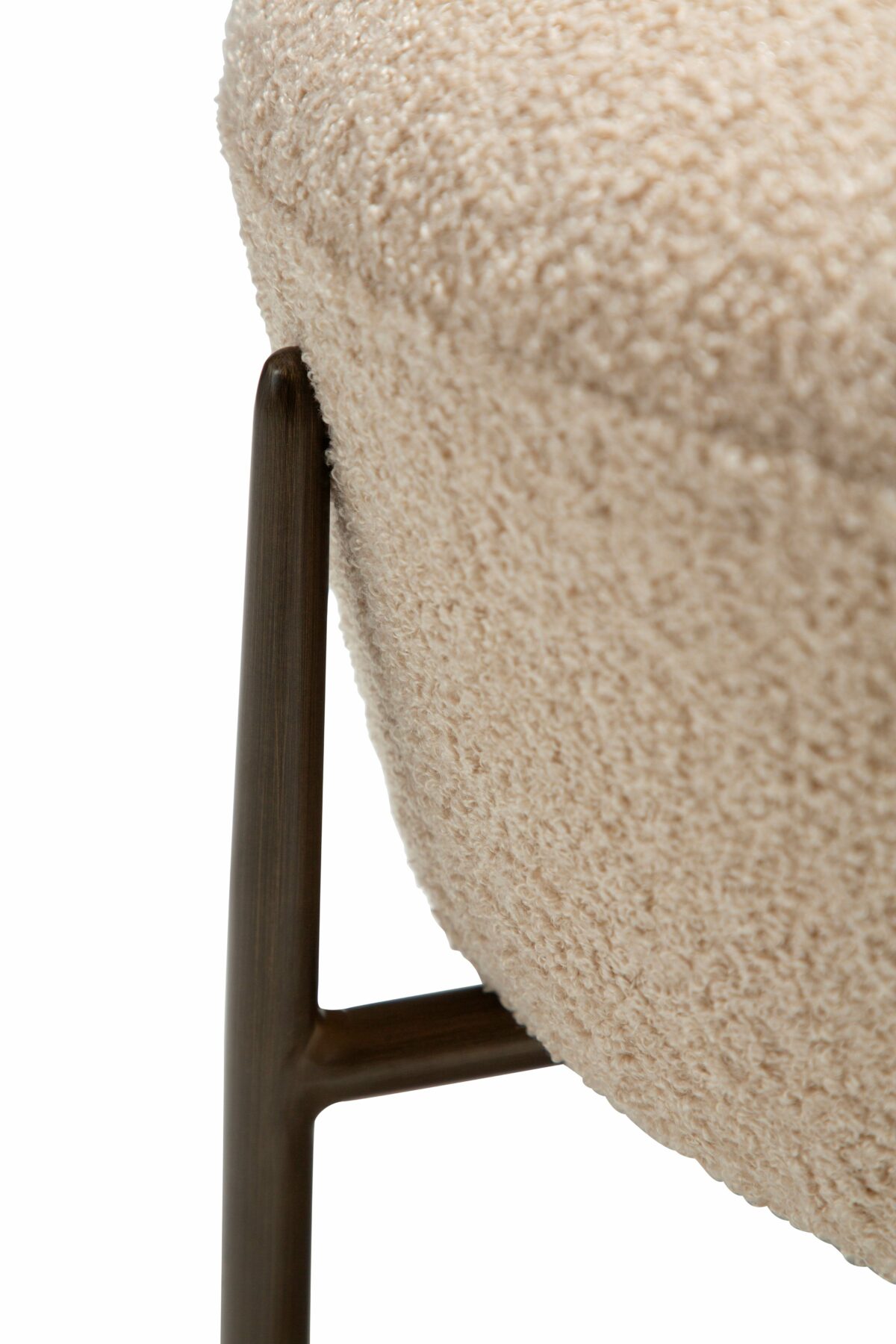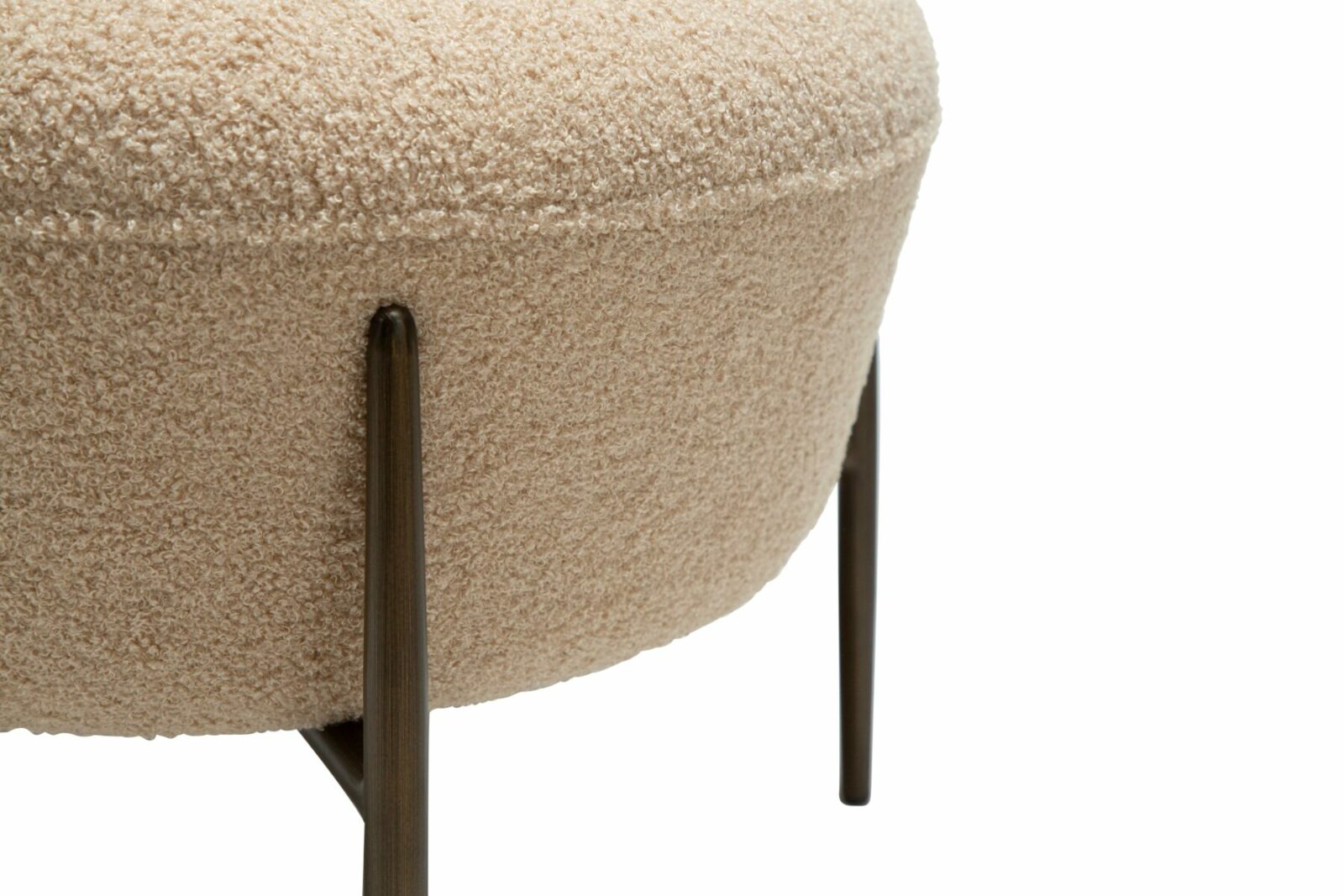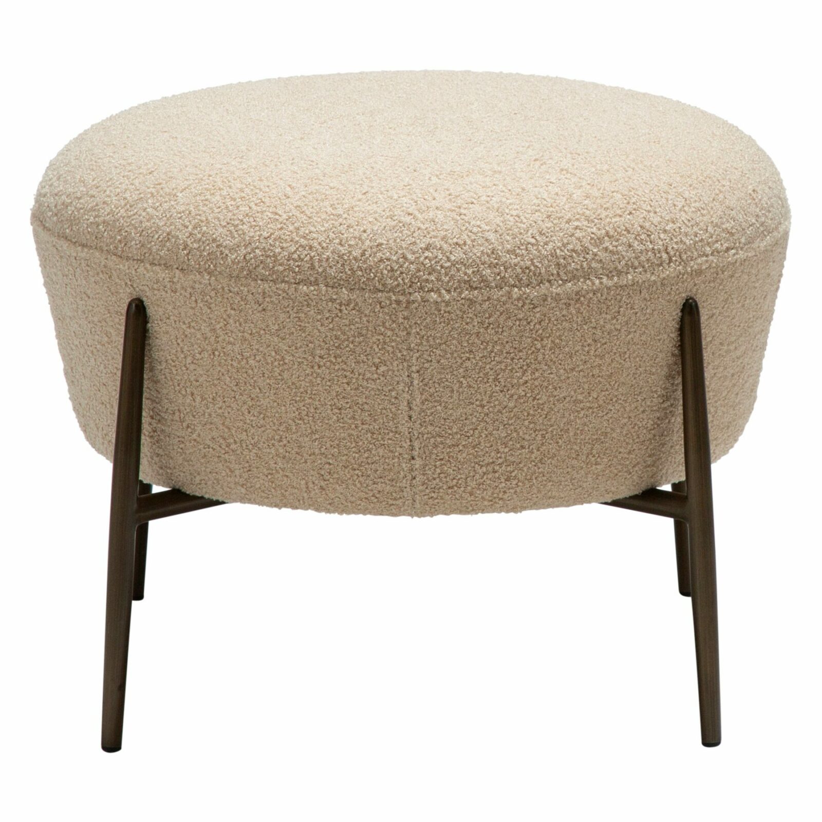 The ORBIT footstool is a stylish and functional addition to any living space. Designed to complement the ORBIT lounge chair, it features a generously cushioned seat with a soft bouclé texture, providing both comfort and contemporary appeal. The sleek, antique brass legs add a refined touch and ensure stability.
