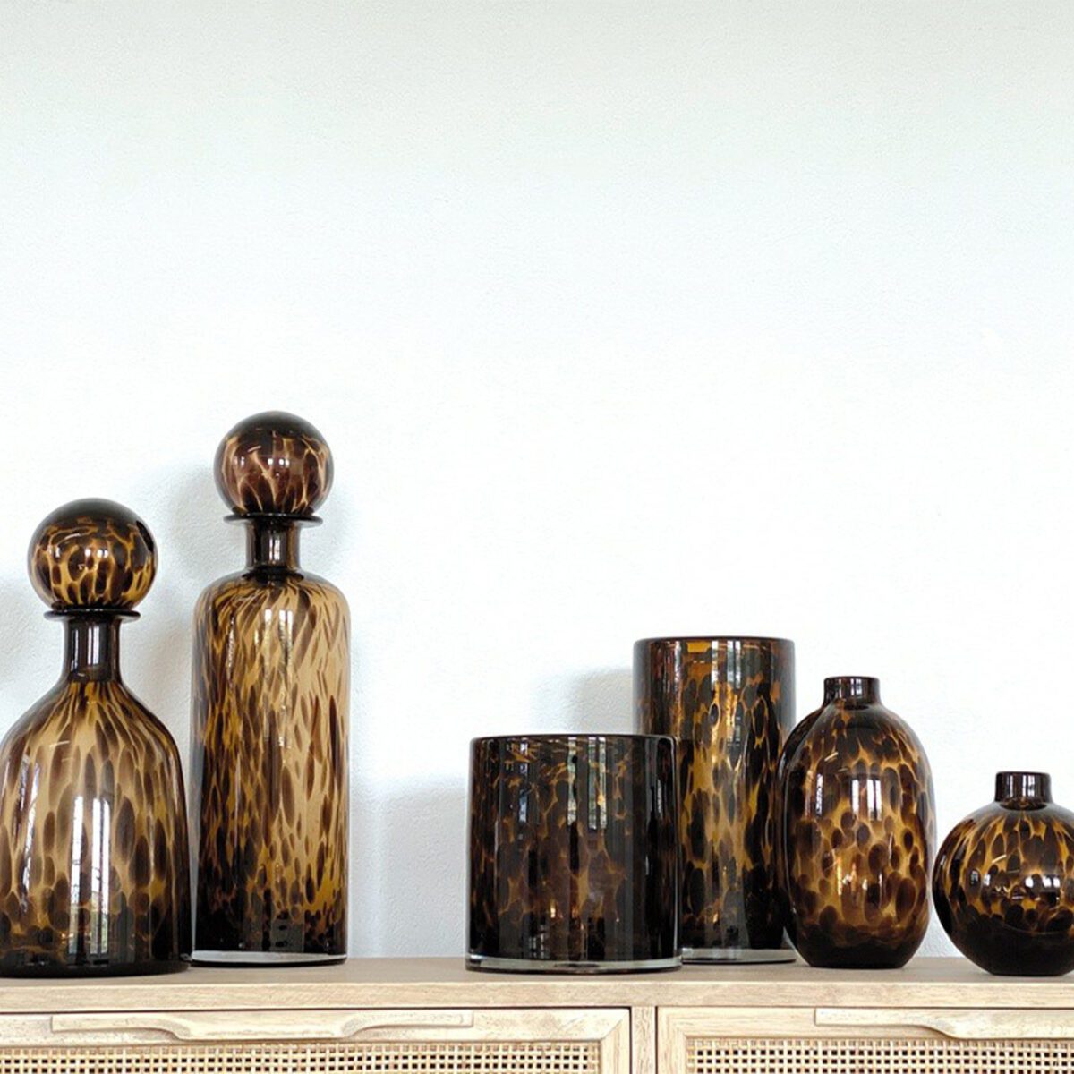 Leopard-style glass vase. Handcrafted product (unique piece).