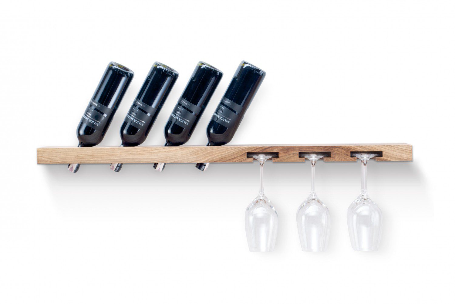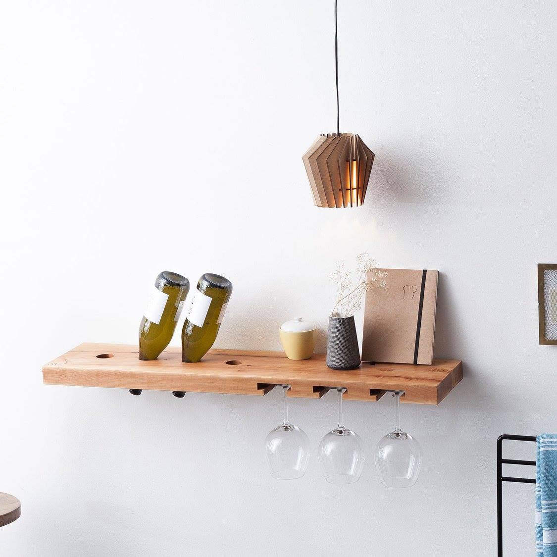 Note: Each wine and glass rack is unique, thanks to the natural wood variations that include knots and cracks. For a more consistent wood grain, please contact us to check what options are available.